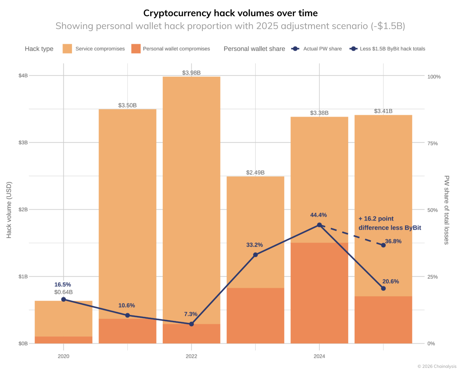 Instead of launching many small hacks, attackers focused on high-impact targets. A single incident illustrates the change. The Bybit exchange breach in February, which drained roughly $1.5 billion, accounted for most of the year’s losses. That concentration highlights a clear priority: fewer operations, maximum payoff.